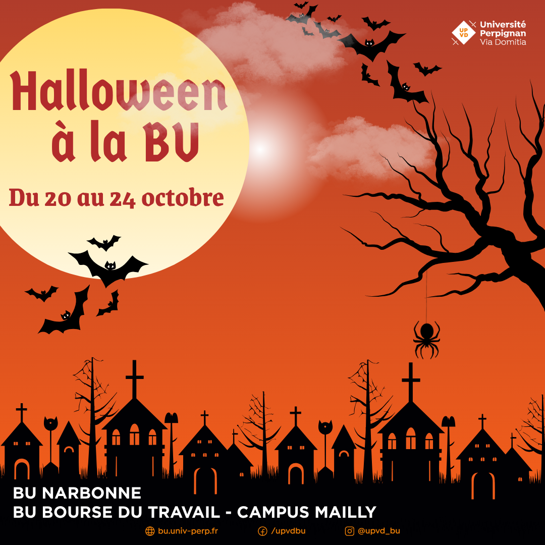 A l'occasion d'Halloween, venez vous faire peur dans les BU de Droit Bourse du travail (Campus Mailly) et BU Narbonne du 20 au 24 octobre.